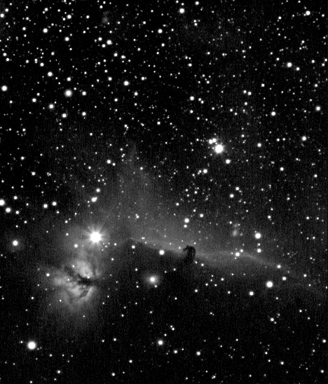 Horsehead Nebula in H-alpha 135 mm camera lens at f/2.8, H-alpha and IR blocking filter 40 exposures of 40 seconds each SBIG ST-7E Taken at Corvallis, OR